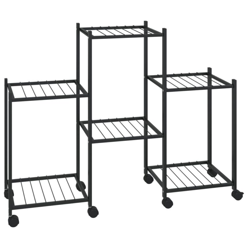 Planeto Bloemenstandaard met wielen 5-laags 44x23x100 cm ijzer zwart